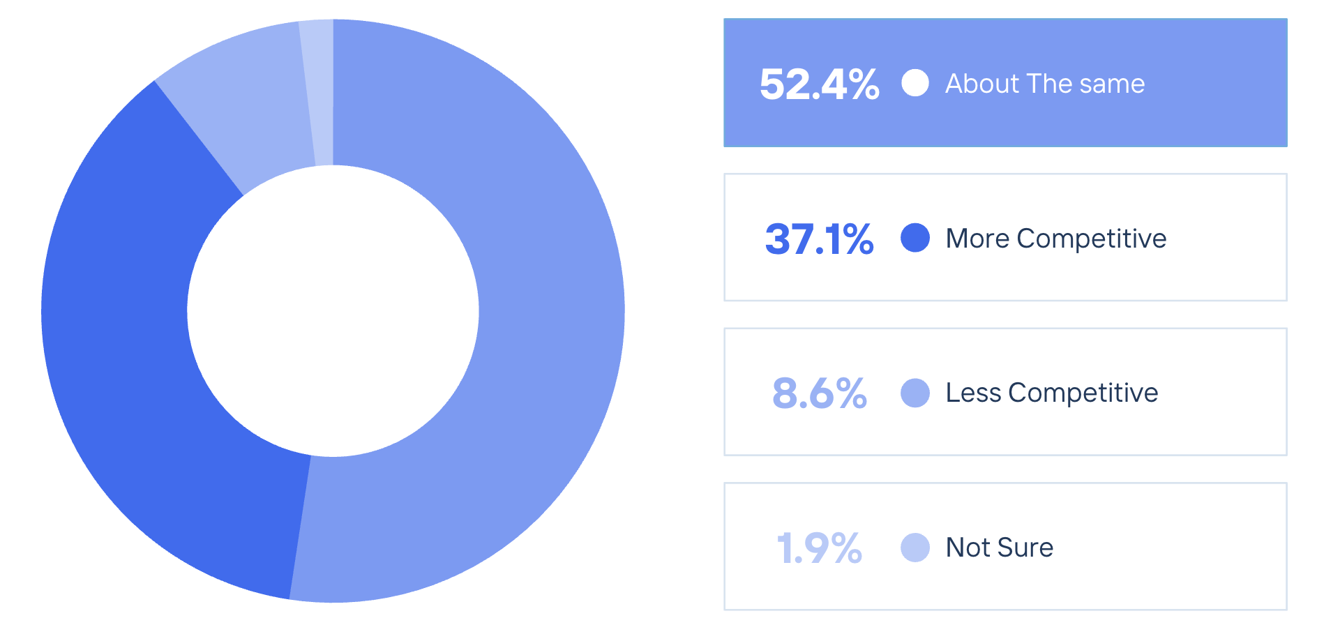 A majority (52.4%) expect investor competition to remain about the same as in 2025, while a meaningful 37.1% anticipate a more competitive landscape, and just 8.6% expect less competition. This suggests that while competition may not intensify materially across the board, a meaningful portion of the market is preparing for increased investor interest.