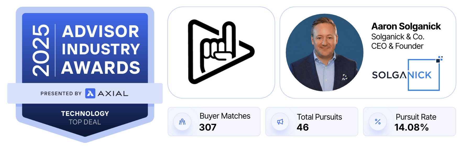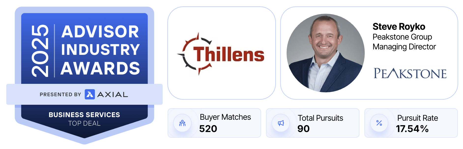 Now, for the third year in a row, we’re featuring Axial sell-side members individually with the Advisor Industry Awards, which showcase the top 2025 closed deals across ten industries.