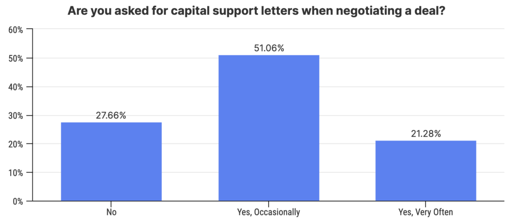 When polled, 72% of survey respondents indicated that they are asked for capital support letters when negotiating a deal, suggesting that the legacy concerns that Neil alludes to are widespread.