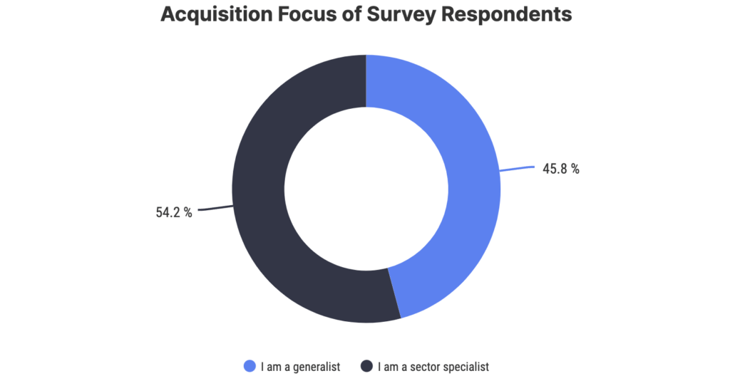 The investment approach of the Independent Sponsor community is a tale of two halves, with 54% indicating a sector specialization and 45% indicating a generalist approach.