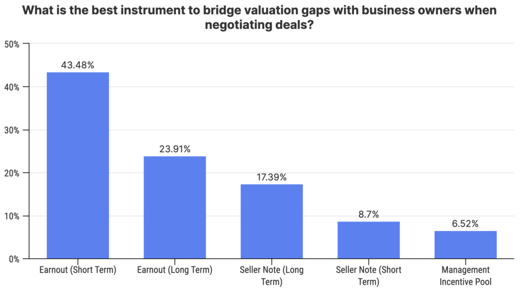 To overcome the challenges with getting deals done, it is critical to address the seemingly normal parts of the M&A process as early as possible with sellers. Bridging the valuation gap is also critical, and it can be done effectively by structuring the deal to include an earn-out, a seller note, or a management incentive pool.
