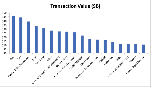 1. Larger transactions become increasingly difficult to finance, financial sponsors move down market. Cheap debt fueled many of the large scale transactions (announced) below, and in some cases very difficult lessons were learned. In a tightening credit market these types of transactions would be inherently difficult to finance, but next to impossible with some of these deals (and many more) needing to refinance the debt that made them possible. As a result, don’t be surprised if some of the sponsors behind these deals become more interested in middle market opportunities.