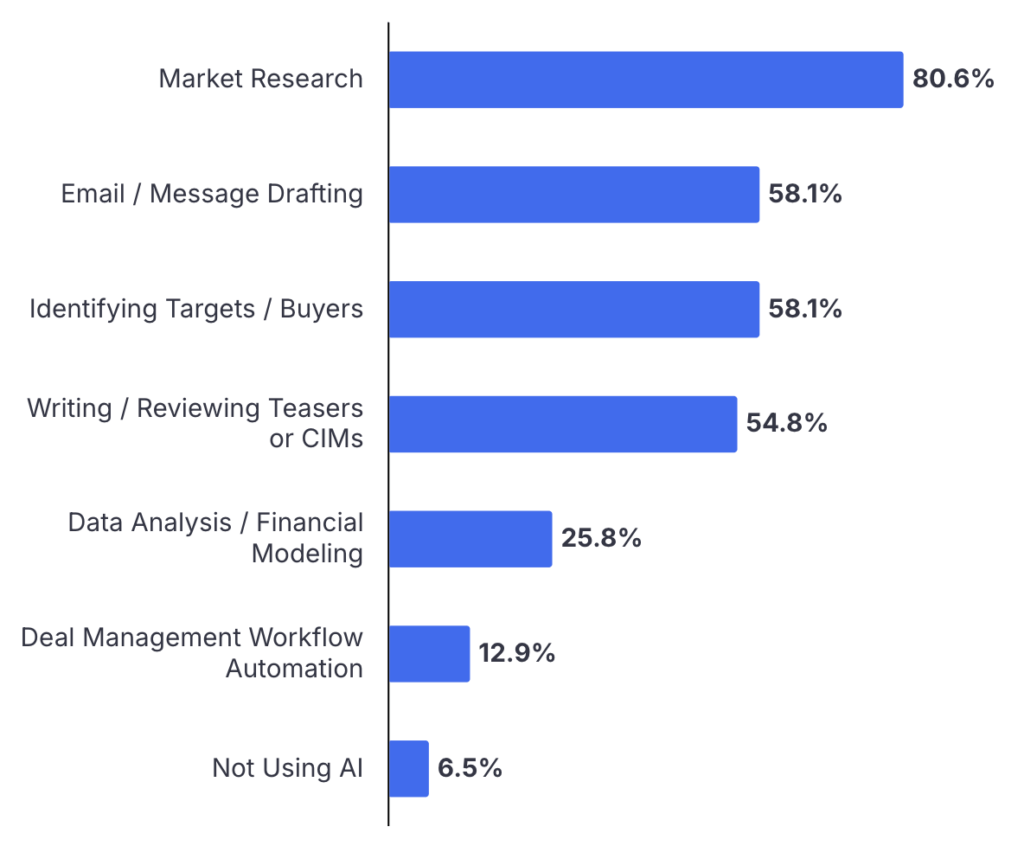 The range of tools reflects a growing trend: AI adoption in M&A is not centered on a single platform, but spread across solutions based on function, use case, and individual preference.