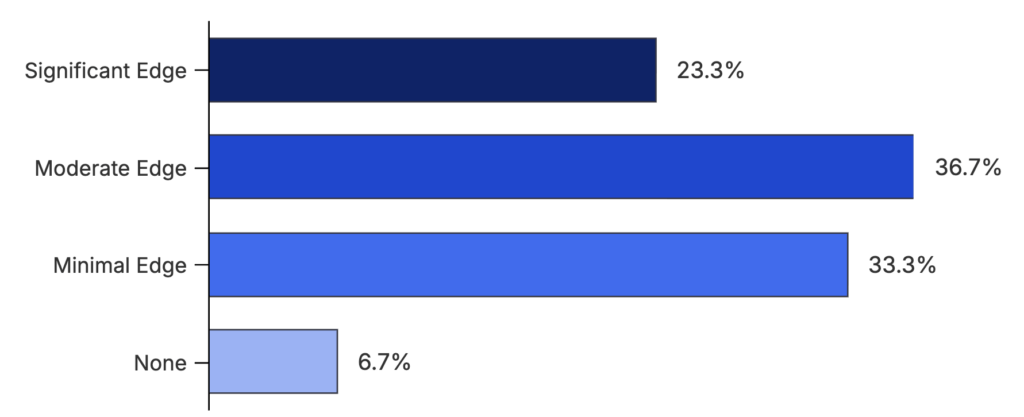 The chart above shows that AI is already embedded in many core M&A workflows. 80.6% of respondents use AI for market research, making it the most common application. More than half also use it for email drafting, buyer targeting, and CIM or teaser writing, suggesting AI supports strategic and communication-heavy tasks. Adoption is lower in areas like financial modeling and deal workflow automation, but still notable at 25.8% and 12.9%, respectively. Only 6.5% reported not using AI, pointing to broad experimentation and growing integration across the deal process.