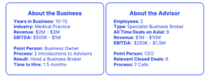 Owners may have personal relationships with one or two advisors. They may receive introductions to a handful of advisors from their accountant, lawyer, or fellow business owner. They may search online and find a few good fits. But exhausting these avenues is time intensive, and still risks the chance of missing out on a relevant advisor.