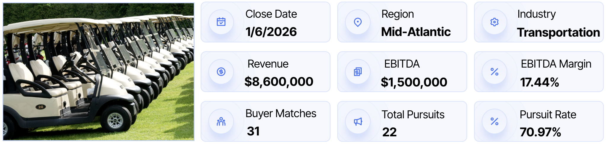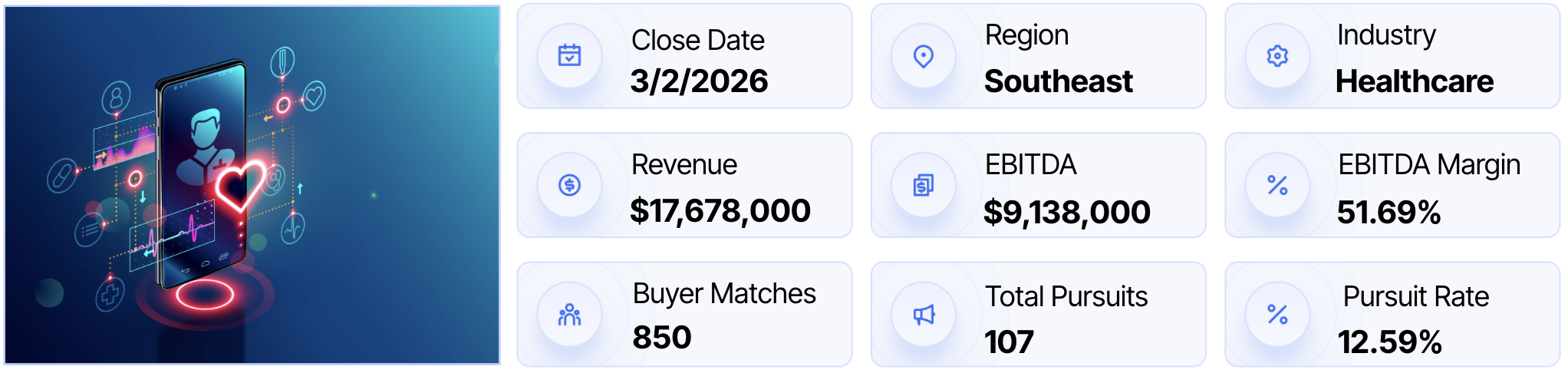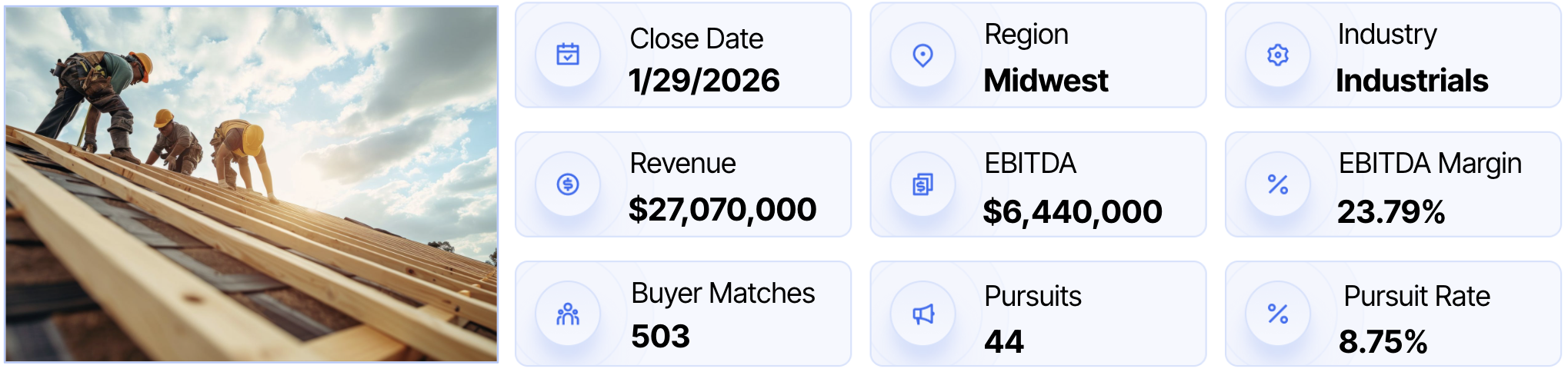The opportunity generated 150 buyer matches; however, the advisor ran a limited process, sharing the deal with only three buyers. Two pursued the transaction, resulting in a 66.67% pursuit rate. This type of targeted approach can sometimes help streamline execution. It also reflects the kind of process effectiveness associated with some of the advisors recognized in the Axial Advisor 100 (2026), which highlights the buyside’s most referred M&A advisors.