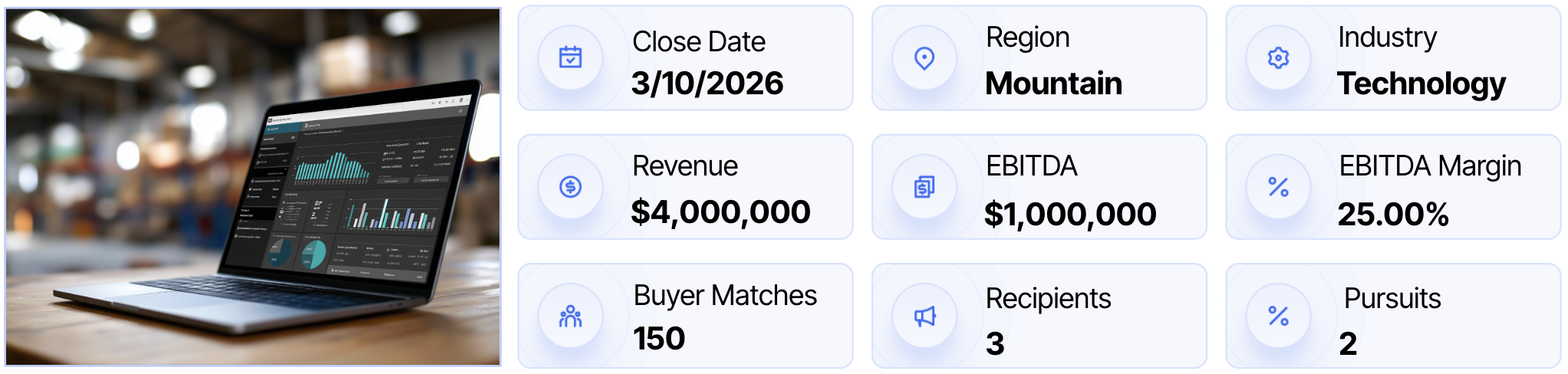 The business generates approximately $5.7 million in recurring revenue through a subscription model with minimal churn. Ownership pursued a transaction to partner with a buyer capable of accelerating growth in an expanding analytics software market.
