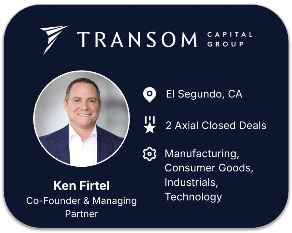 “Transom Capital Group is a Los Angeles-based private equity firm with an operational focus on private equity investing in the middle-market. The Transom Capital team has a track record of investing and guiding the growth of lower-middle-market businesses. Key to this success is our unique, hands-on approach to partnership, which provides operational involvement and support to each portfolio company without overwhelming the management team. As investors, we view our role as critical, but not sufficient, to generating forward thrust, momentum, and, if needed, a change in direction.”