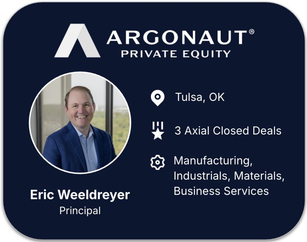 “Founded in 2002, Argonaut Private Equity is a Tulsa, Oklahoma-based private equity firm with over $1.5 billion of capital deployed by the firm’s principals. The firm is currently investing out of Argonaut Private Equity Fund IV, a $400 million fund that deploys Argonaut’s strategy of making control-oriented buyout investments in companies in the industrial, manufacturing, and energy services and products sectors.