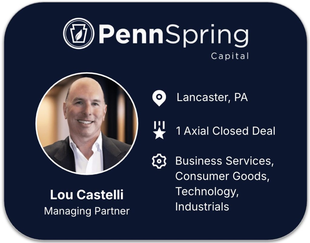 “PennSpring is specifically engineered to assist companies that are not quite ready for institutional capital. Specifically, we specialize in elevating companies with EBITDA of $750,000 – $5 million to the next tier of $5 – $10 million and beyond – and thus positioned for an institutional audience. With a robust rolodex of ways to finance transactions, including direct investment, we can close quickly.