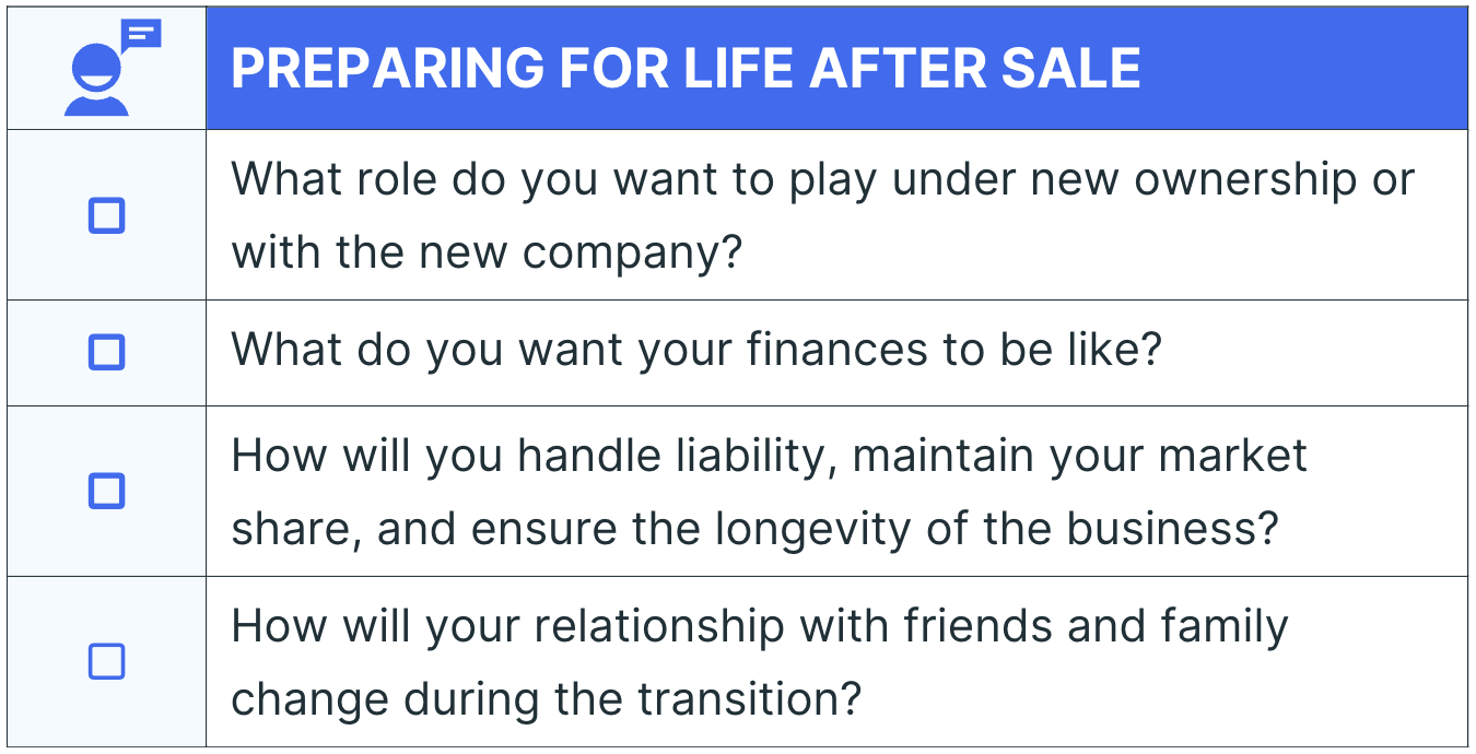Before closing a deal, it’s important for the business owner to spend time thinking through the post-sale plan and what they want their business and life to be like. Advance planning will help the business owner find the right partners, arrive at the right deal, and seamlessly transition into their desired lifestyle.