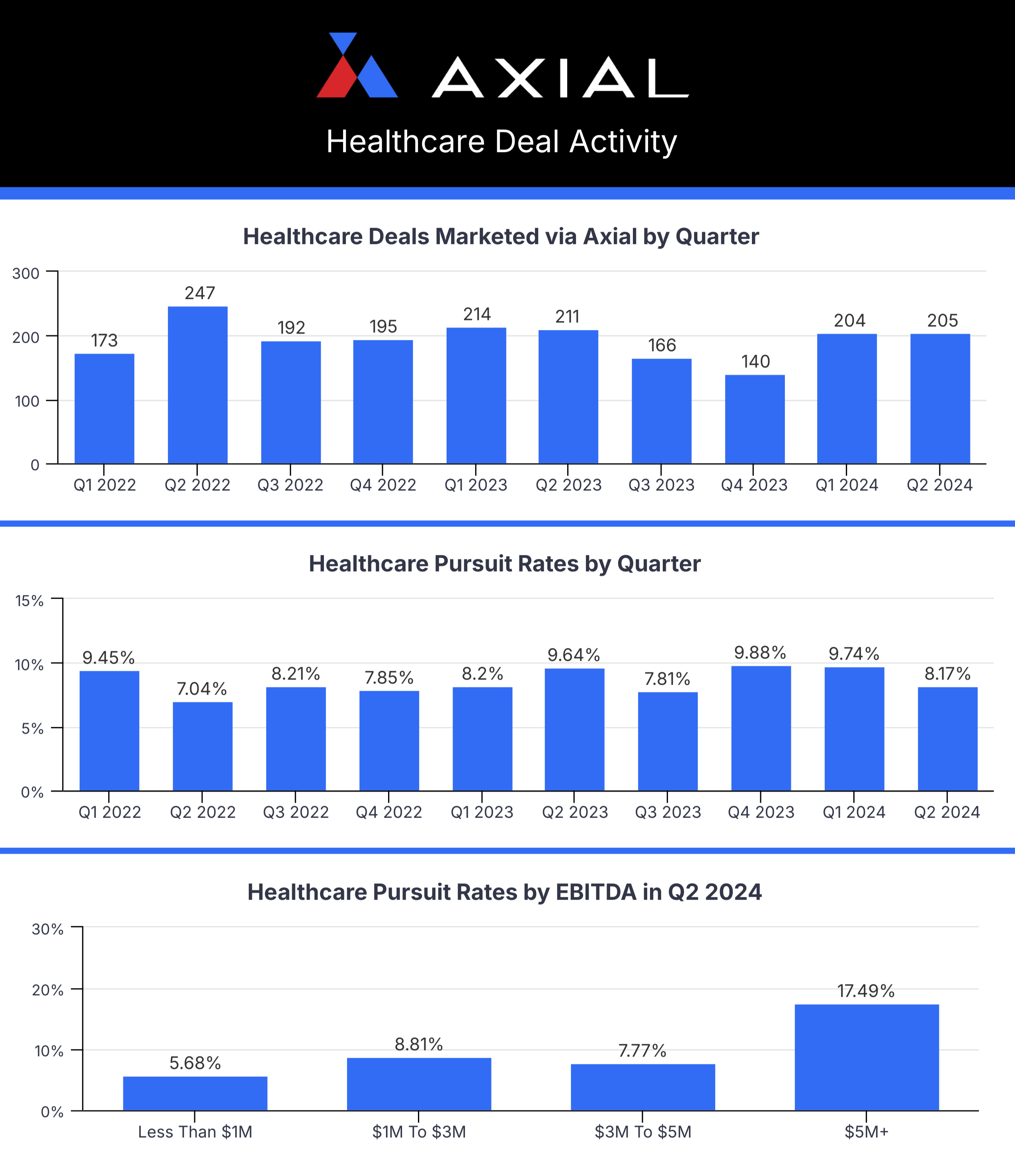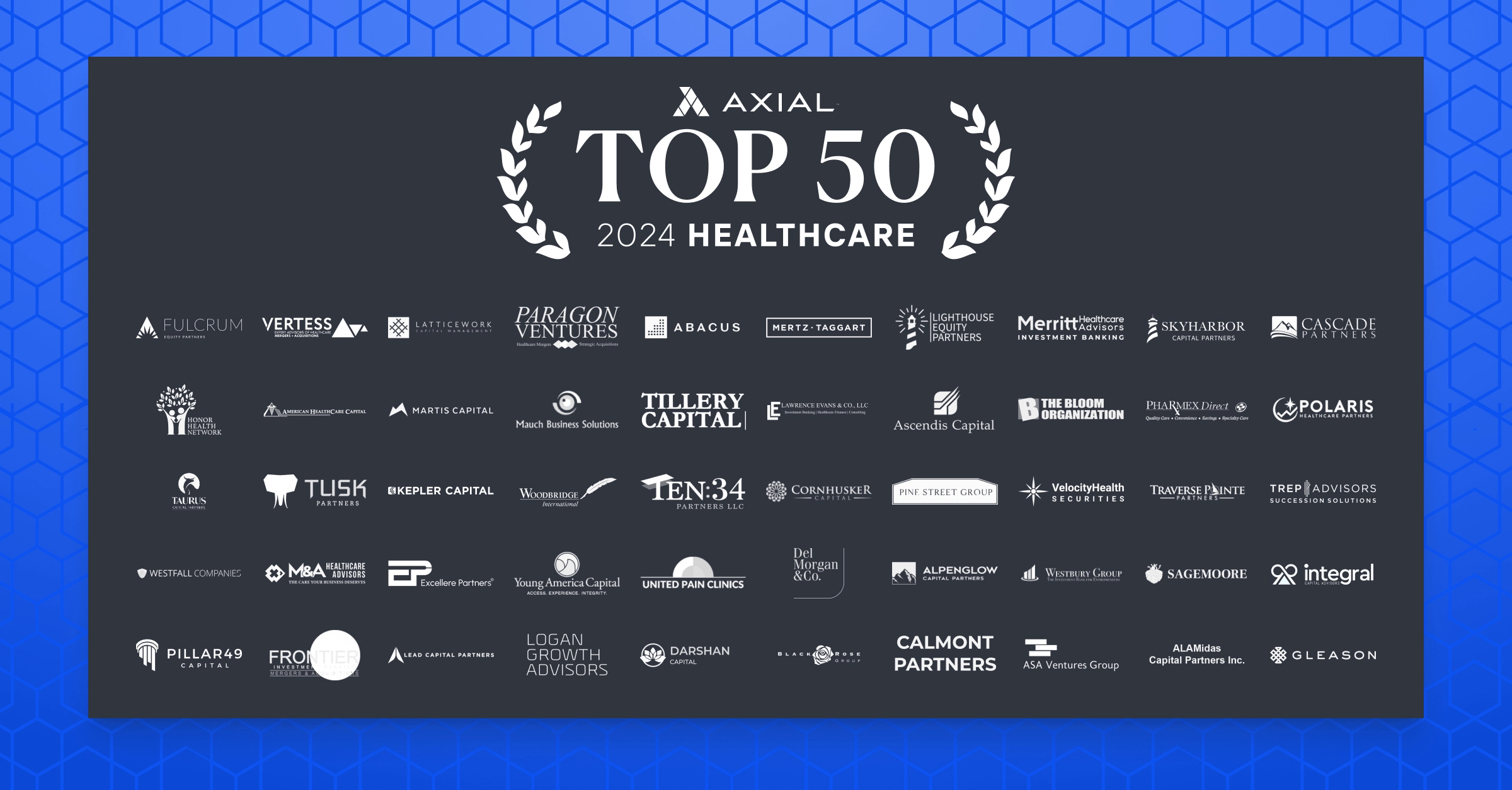 Axial is happy to release its 2024 publication of the Top 50 Lower Middle Market Healthcare Investors and M&A Advisors: a list that features Axial’s 50 most active and sought-after members who worked on transactions across various healthcare sectors over the past 12 months (full methodology below).